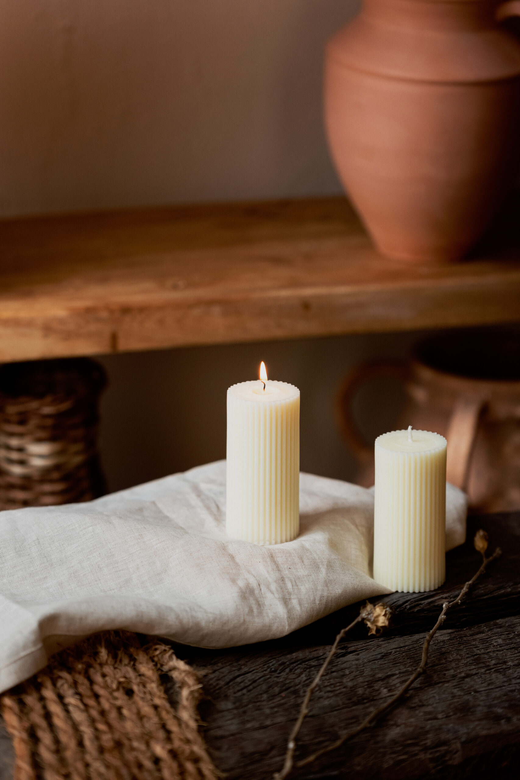 White Ribbed Circle Candle